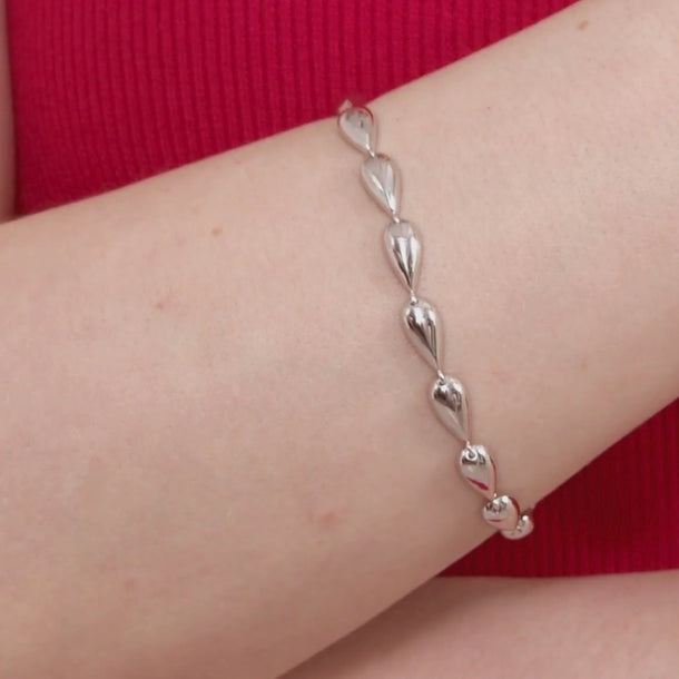 This elegant bracelet features 15 solid sterling silver droplets, each measuring 12mm x 5mm. The design is inspired by the falling tear drops of emotion, creating a stunning and eye-catching accessory. Perfect for layering with other pieces or wearing alone, it adds a graceful touch to any outfit.
