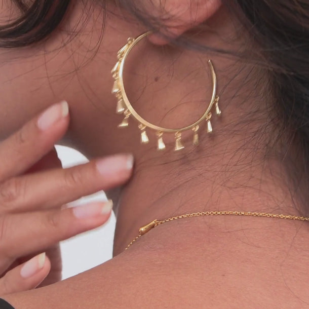 A stunning pair of sterling silver hoop earrings, perfect for any occasion. Featuring 11 delicate droplets, these hoops offer a timeless elegance with a modern twist. Whether for daytime or evening wear, these earrings add a touch of sophistication to any look.