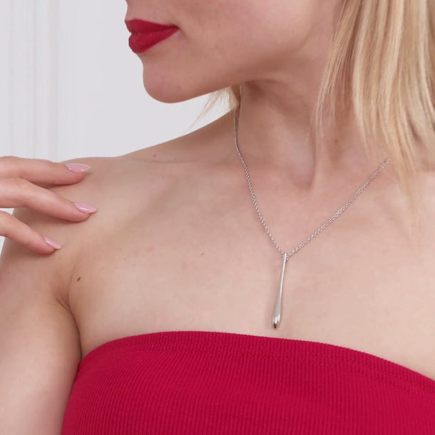 An elongated tear of emotion, this stunning pendant is designed to be noticed. Its high polish catches the light beautifully, offering a striking look that can also be styled on a longer necklace for a unique appearance.