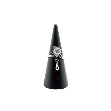 Sterling silver moissanite star ring with drop