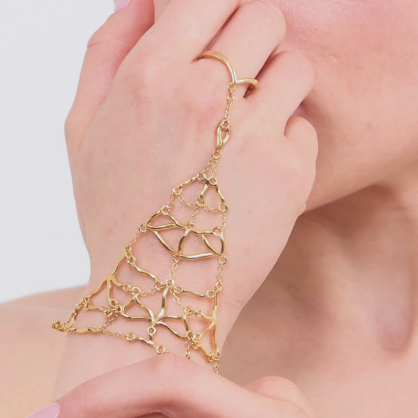 The unique Hand Chain from Lucy Quartermaine is a stylish and versatile accessory. This modern design sits comfortably, blending elegance with functionality. Crafted from premium 925 Sterling Silver and rhodium overlay, it ensures durability, shine, and lustre, while making a statement with its distinctive aesthetic.