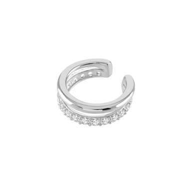 The Melody Double ear cuff, features two sterling silver bands that wrap around the ear, one of which is set with white topaz for added sparkle. The perfect day-to-night ear accessory.